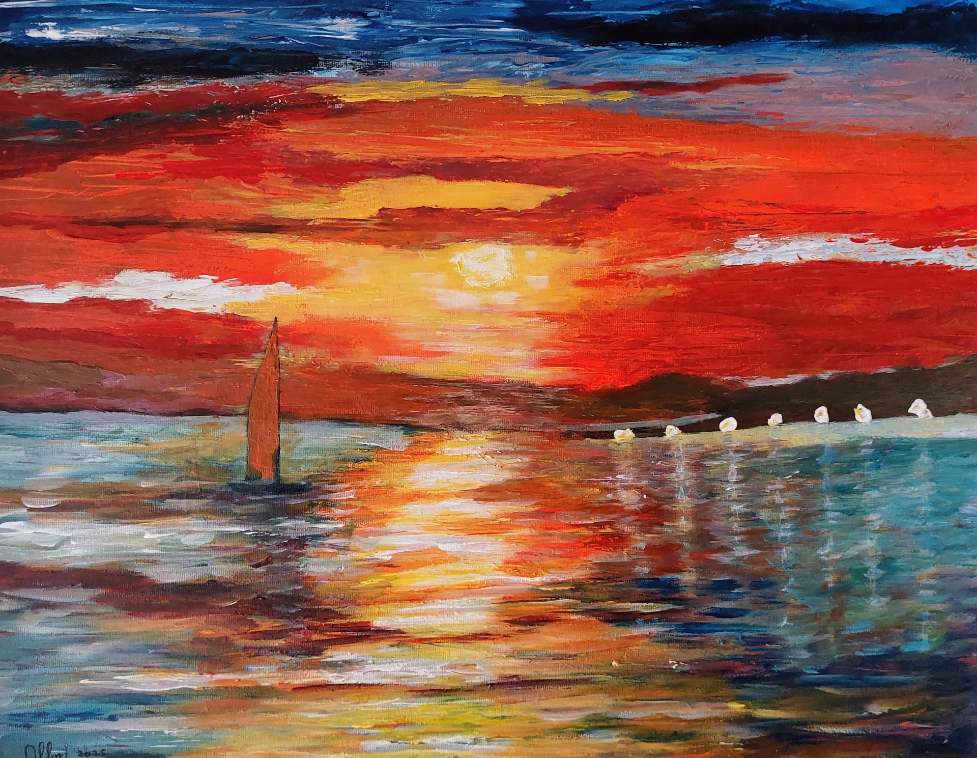 - Technique : Acrylique sur toile (Impasto)